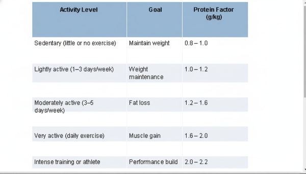 Protein Intake (grams/day) = Body Weight (kg) × Protein Factor (g/kg)